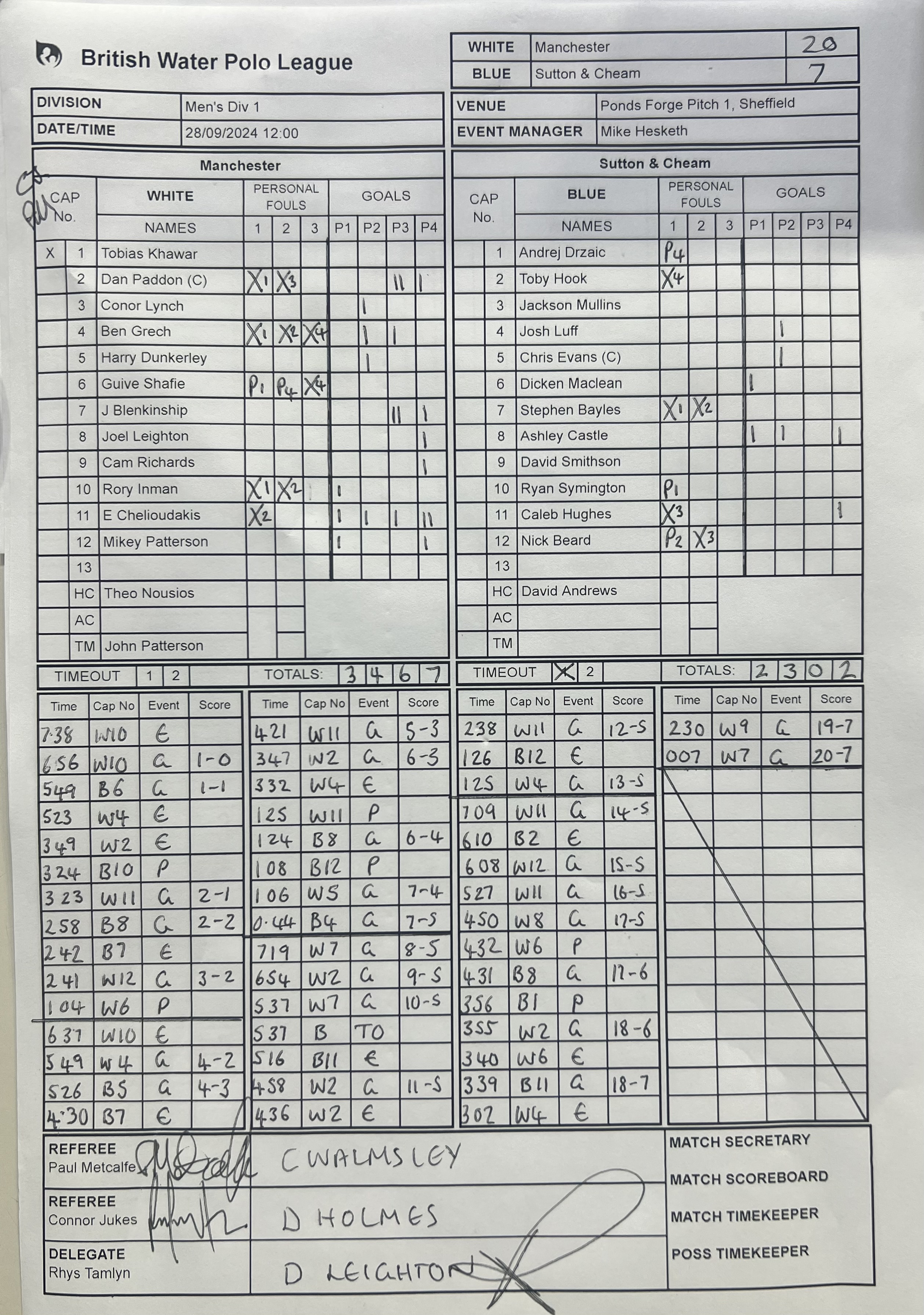 | 18:15 | Manchester | Sutton & Cheam | 19 - 1 | Match Sheet |