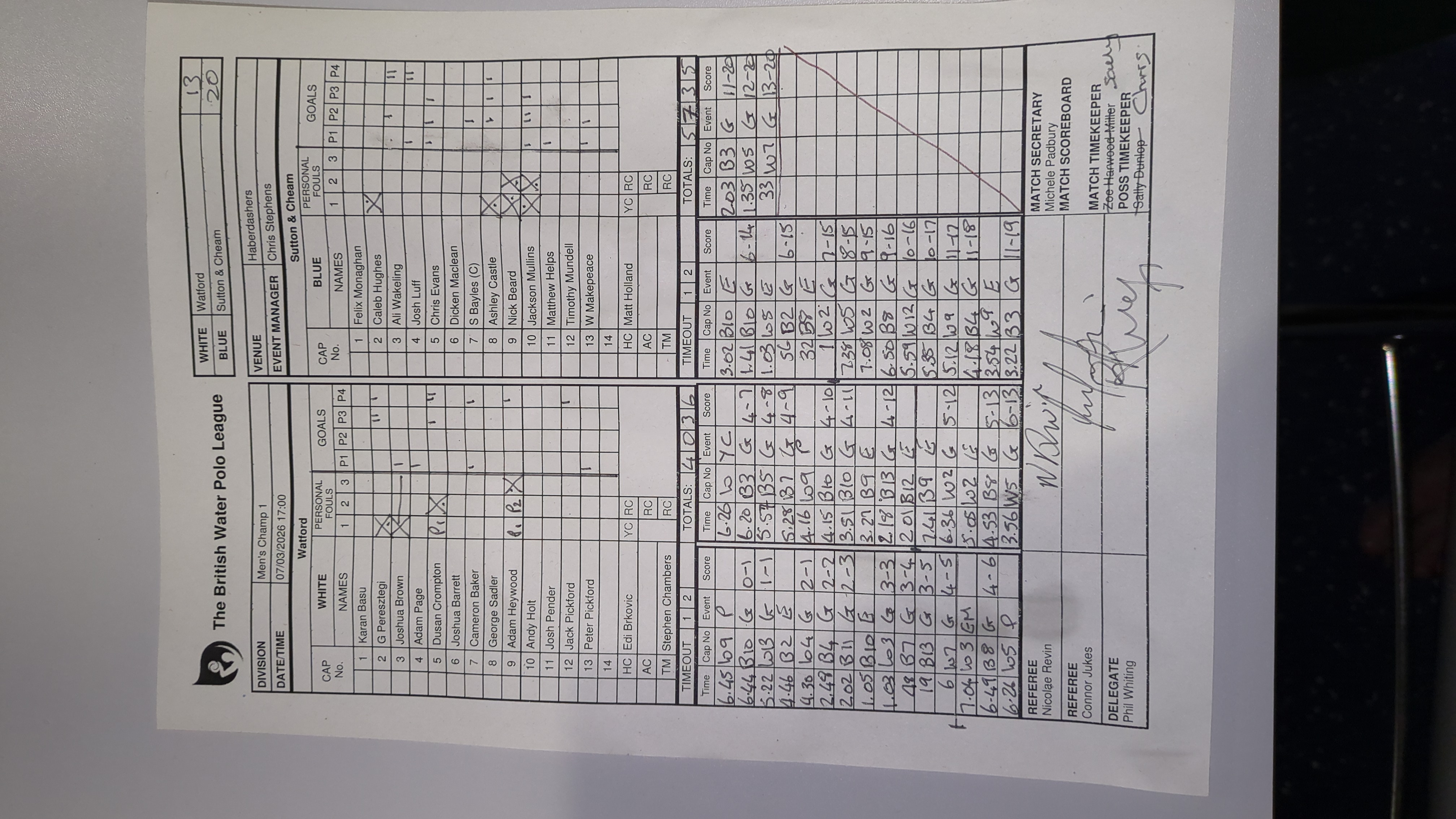 | 17:00 | Watford | Sutton & Cheam | 13 - 20 | Match Sheet |